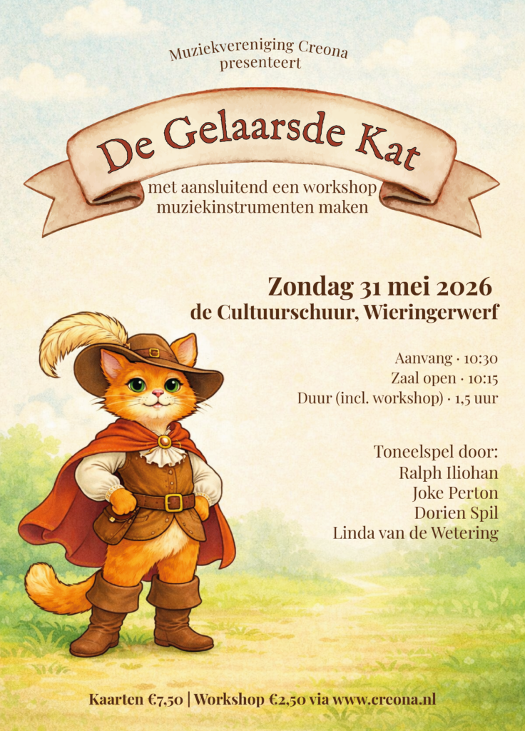Schrijf deze datum alvast in je agenda, want op zondagochtend 31 mei organiseren we een sprookjesconcert. Net zoals een paar jaar terug Pinokkio hebben gespeeld, toveren we ook nu weer een mooi sprookje uit de kast.